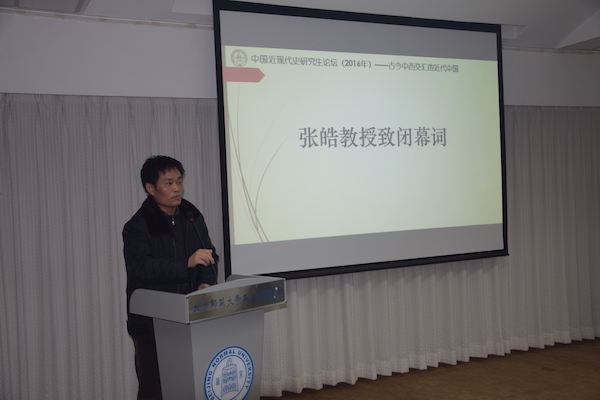 经过一天紧张而热烈的讨论,2016年度中国近现代史研究生论坛于12月7日下午5时举行闭幕式。闭幕式上,拼搏在线登录张弘毅、北京大学历史学系李乐、中国社会科学院研究生院肖瑞宁分别代表各自分组做了学术小结,张皓教授致闭幕词。