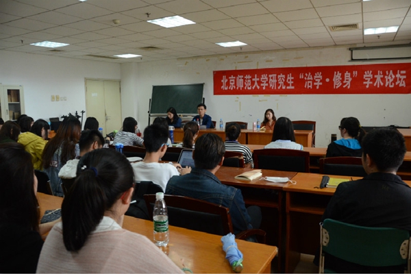 交流会首先由优秀学生向大家传授经验。博士生葛静波师兄从研究领域、书籍阅读和文章写作三个方面与大家分享了自己的学习历程;黄阳榕师姐介绍了她在台湾东吴大学交换学习的经验以及准备申请材料等相关事宜;刘晓月师姐和李嘉盈师姐主要介绍了在校外单位实践的相关情况。