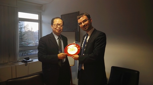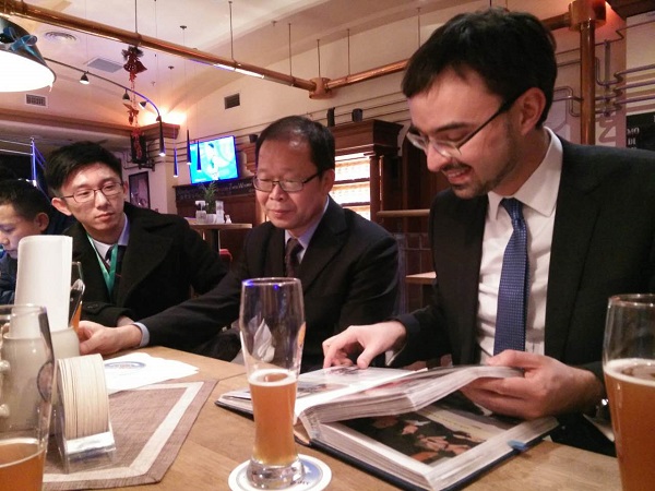 孙立新教授为Alexander Roth先生的介绍做了总结,他指出难民问题有着极其复杂的原因,中国在相关方面也有着相应经验,国际社会应该一同努力致力于解决欧洲难民问题。孙教授最后向小组成员提出建议,希望小组成员行动起来,积极宣传,为解决难民问题贡献力量。座谈会结束后,双方互赠礼品并合影留念,孙立新教授代表拼搏在线登录向德国驻华大使馆赠送红底纪念盘,大使馆则向小组成员回赠了纪念册、纪念背包等纪念品。值得一提的是,Alexander Roth先生在会后还热情邀请了小组成员们品尝了德国黑啤,本次活动在愉快的交流中圆满结束。