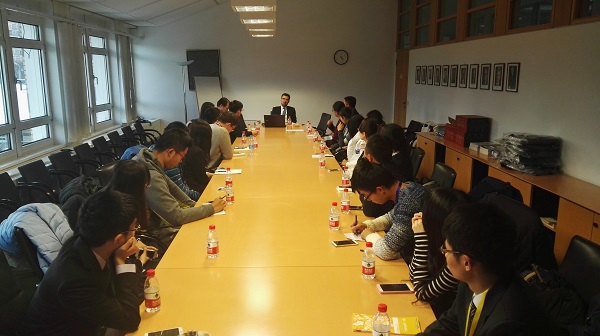 下午2时30分,“形势与政策”小组成员抵达德国驻华大使馆。德国驻华大使馆新闻处外交官、“德国印象”微信公众平台主编Alexander Roth先生在使馆三楼会议厅与小组成员举行了以“欧洲难民问题”为主题的座谈会,双方展开广泛而又亲切的交流。Alexander Roth先生首先对北京师范大学“形势与政策”小组同学的到来表示欢迎,随后他介绍了当下欧洲面临的难民危机。Alexander Roth先生从难民的来源、数量、构成、动因等诸多角度全面展示难民问题的基本概况,随后他介绍了欧洲在处理难民问题方面的行动,包括设立联邦基金、提供工作机会等措施,充分体现了欧洲尤其是德国在对待难民问题上的开放态度。针对巴黎近期发生的恐怖袭击事件,他指出当前恐怖分子并没有通过难民潮进入欧洲,难民大多是受害者,欧洲国家将会加强管控,做好难民安置工作,尽早使难民与社会实现融合。最后他介绍了难民迁入对德国与欧洲的积极影响,强调要对难民保持开放态度,这也是德国精神的体现。Alexander Roth先生还回答了小组成员关于国际反恐、土耳其击落俄罗斯战机、欧洲杯的有关问题。