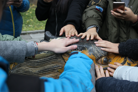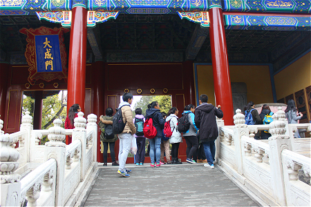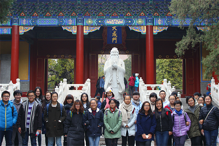 今年是至圣先师孔子诞辰第2567年。春秋学社秉承师大“学为人师,行为世范”的校训,吸取历年来举办活动的经验,顺利举行了本年度的祭孔活动。上午8时,大家一同出发前往北京孔庙。2014级社友陈博洋担任解说,带领大家参观了太学碑、触奸柏、大成殿、十六方石碑等。参观过程中,大家还体验了“独占鳌头”和踩“状元石”的感觉。