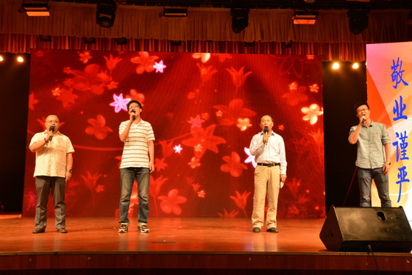 2012级本科生带来舞蹈《大王叫我来巡山》,班主任黄国辉身穿黑色披风特别出演,表情可爱,动作呆萌,与学生们配合默契,引起全场一片欢呼。接着2013级硕士生联唱离别曲目,淡淡的伤感弥漫在晚会现场。接下来一支魅惑动感的舞蹈《LAMB》再次引爆了全场。师生合作朗诵的《寻梦者》《那时你老了》抑扬顿挫,木铎金声;器乐合奏的《梅花三弄》意境悠远,令人叹赏。