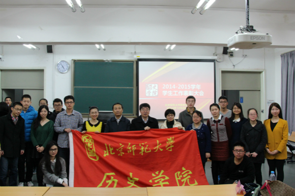 2015年12月20日,历史学院2015年学生工作表彰大会在教四201召开。本次大会旨在表彰过去一年中有突出贡献的集体和个人,并颁发国家奖学金、国家励志奖学金、京师奖学金、白寿彝史学论著奖、三好学生等多个奖项和荣誉称号,鼓励全体同学在新的一年里继续向前,不断开拓创新。
