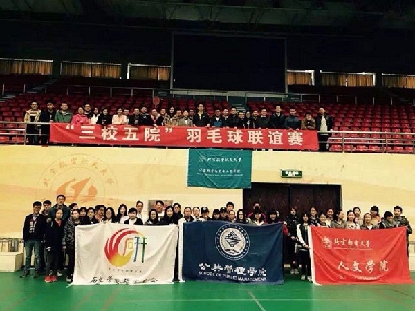 2016年10月29日,冬寒凛冽,冷风阵阵,然而在北京航天航空大学的羽毛球主馆里,一场别开生面的羽毛球比赛正热火朝天地进行着。为促进三校友谊更加深厚,加强同学们的体育素质和运动精神,北京航天航空大学,我校历史学院及北邮三个学院联合起来举办了本次活动。三校学生踊跃积极地参加了这次活动,赛场上热情洋溢,和乐融融。
