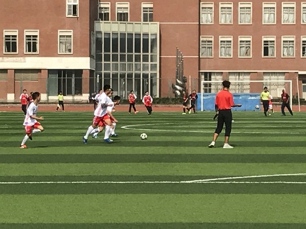 比赛在在场观众的加油喝彩声中开始,上半场开场不久,作为今年实力较强的政府管理学院队凭借着丰富的经验和娴熟的技能先发制人,拔得头筹。历史学院队虽面对压力,但能较快调整好心态和战术,不断寻求进球机会,但遗憾的是,球屡屡撞到门柱。下半场,双方队员展开体力比拼的拉锯战,政府管理学院队员左攻右突,双管齐下,几次进攻我方大门。我方队员加大拦防力度,尤其是我方队员的头球和守门员的精彩扑救构成了坚固的防线。不知不觉,比赛在裁判的口哨声中结束,我方并未夺得进球佳机,最终遗憾告负。
