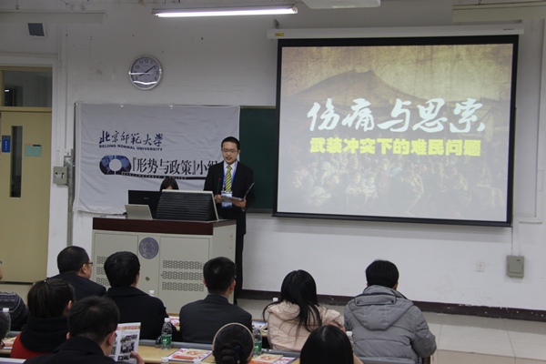 第一组代表卢冰屿同学以“伤痛与思索:武装冲突下的难民问题”为题,从世界各主要区域的难民问题出发,以巴勒斯坦地区难民问题为例,具体分析了该地区难民问题产生的历史原因、现状及其面临的国际环境,尖锐指出某些国家面对此类问题自私、强硬的态度,并提出我们应关注、关心难民问题,做力所能及之事;第二组代表朱丁睿同学以“看不见的威胁:全球视野下流行性病毒案例反思”为题,以埃博拉病毒的爆发为切入点,回顾了甲型H1N1流感,分析了最近几年流行性病毒肆虐的原因、各国采取的措施等,最后提出我们要反思人与自然的关系,加强各国科技合作,发挥国际组织的作用,坚定共同抗击病毒的信心。第三组代表国际关系学院庞嘉元、沈越同学以“浅析苏格兰公投”为题,首先带我们回顾了苏格兰公投的经过,然后分析了公投发生的背景及原因,展示了世界各方面对该事件所持的不同态度,最后通过分析此次公投产生的影响,对公投提出自己独到见解;最后一组同学顾丰、田奥凡同学以“颜色撕裂的政治:振荡中的泰国和乌克兰”为题,从对比分析泰国和乌克兰走向断裂的政治着手,进一步阐述了在社会发展中利益冲突与利益分配问题,最后联系我国的社会问题,引发对建构超民族性国家认同的思考。各组展示内容丰富、形式灵活,主讲语言生动、感染力极强,赢得了现场观众的阵阵掌声。贾珺老师与孙立新老师对这四组展示分别做了精彩且专业的点评。