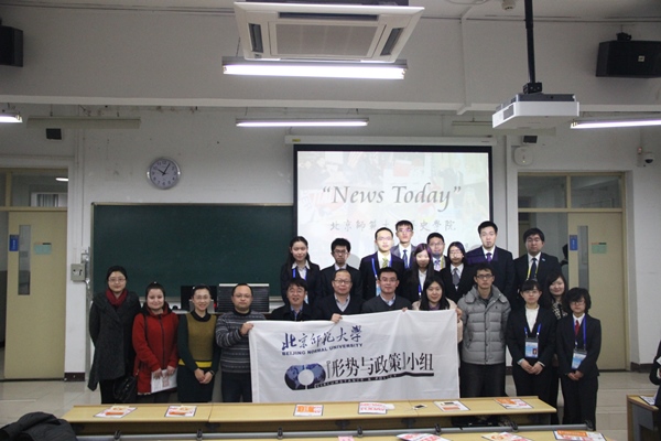2014年12月20日晚八点,“News Today”拼搏在线登录环球论坛第九场在教二108 隆重举行。拼搏在线登录院长杨共乐老师,北京师范大学本科生工作处处长王洛忠老师,历史学院世界现代史教研室教授孙立新老师,历史学院世界近代史教研室副教授贾珺老师,历史学院分党委副书记王卓凯老师,历史学院学生专职辅导员李力老师,历史学院学生事务助理、2014级本科生班主任周一帆老师等嘉宾莅临现场。