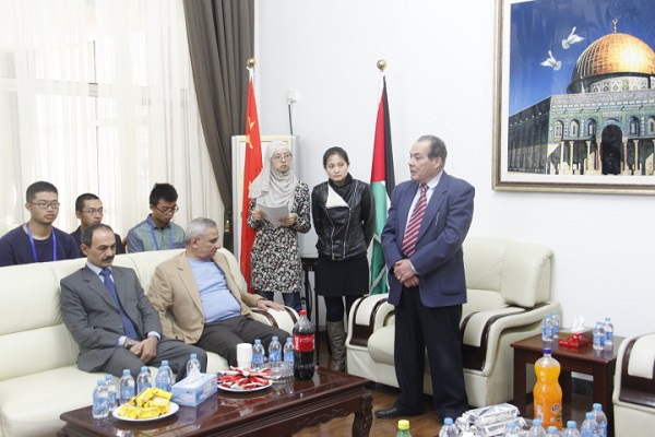 活动开始,大家通过一段视频记录回顾了我院师生与巴勒斯坦驻华使馆十余年的友好交往和我院学生2011年出访巴勒斯坦的特别经历。视频结束后,我校代表发言表达了对巴勒斯坦人民的深刻关怀和对中巴交流前景的美好展望,同时也向巴方展示了中国青年学生发展中巴友谊,为建设和平巴勒斯坦贡献力量的决心。
