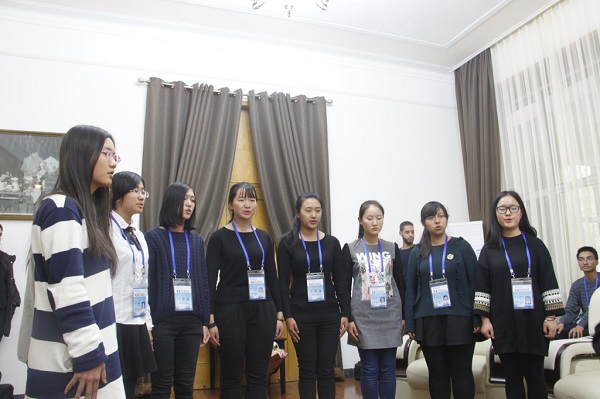 值得一提的是,我院学生还为这次活动精心准备了小节目,表演了歌曲《长城谣》,用歌声传递了对巴勒斯坦人民的祝愿。愿巴勒斯坦人民继承阿拉法特先生的遗志,用自己的双手创造和平、美好未来!优美的歌声过后,北京师范大学辅导员培训和研修基地的田震老师和单人俊老师向使馆赠送了北京师范大学的纪念品,我院学生代表向使馆赠送了2014年“首都高校学生纪念阿拉法特主席逝世十周年主题活动”的漆盘。萨地•加波公使向我校师生代表回赠了来自巴勒斯坦的纪念品。愿中巴友谊能够在交流中不断加深,友谊地久天长!