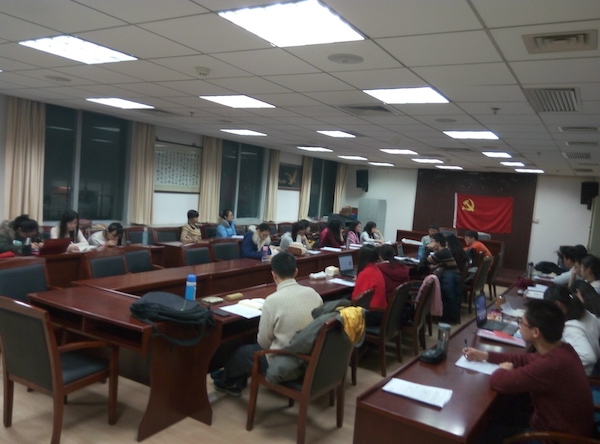 12月18日晚,历史学院2016级硕士生党支部全体党员与2016级、2015级、2014级硕士生积极分子、2016级博士生积极分子们开展了关于十八大党章、《关于新形势下党内政治生活的若干准则》和《中国共产党内监督条例》,以及习近平总书记在全国高校思想政治工作会议上的讲话的交流研讨会。会议由2016级硕士生党支部党员、2016级硕士生团支部书记宋典同志主持。