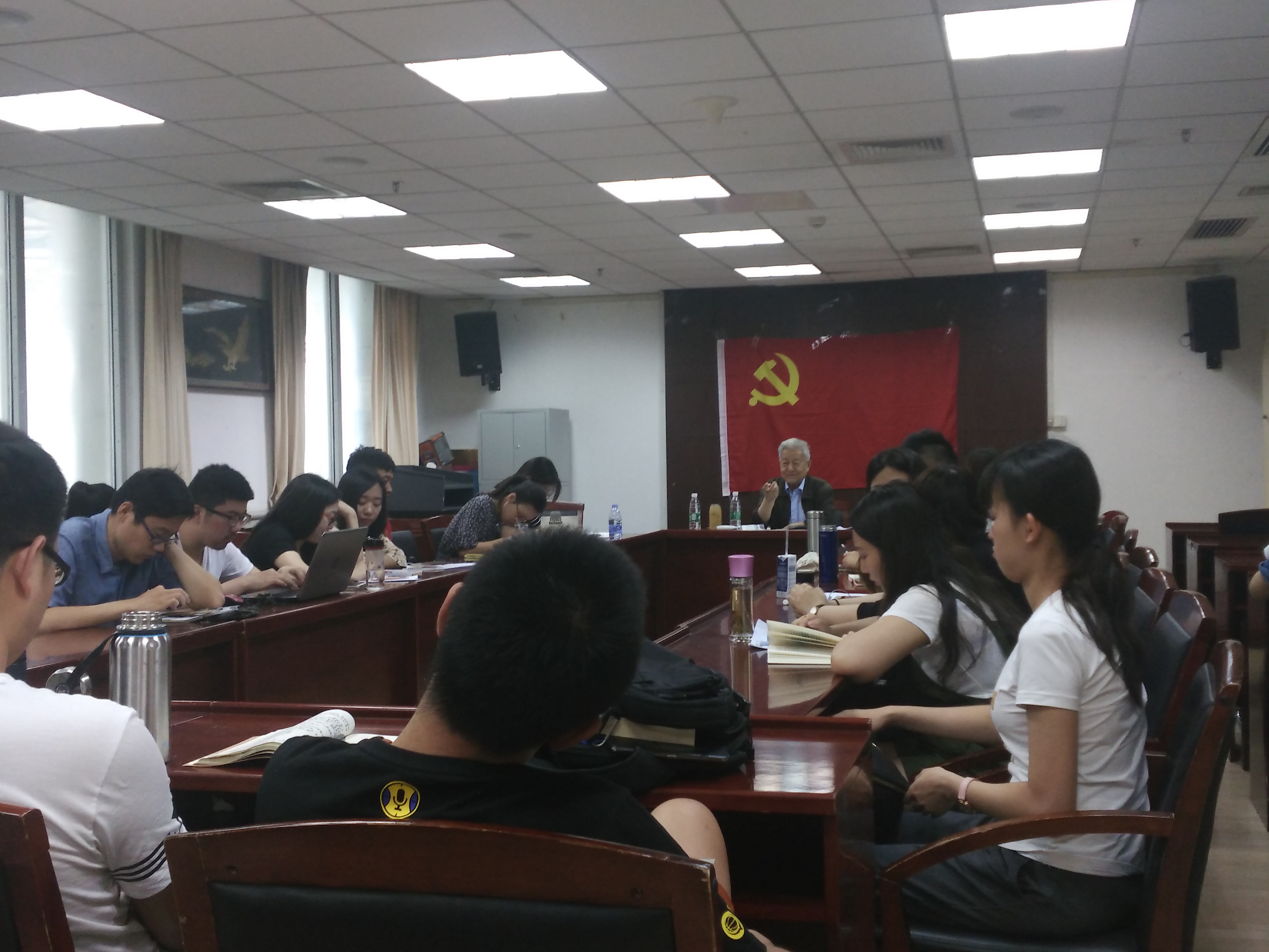 2017年6月24日上午,我院2015级硕士生第一党支部、第二党支部在主楼600会议室举行“坚定理想信念·铸牢战斗堡垒”专题教育座谈会。离退休教职工党支部的张宏毅老师受邀出席了本次座谈会,并进行了“中国成功破解经济学上的世界性难题”的主题讲座。座谈会由2015级硕士生第二党支部书记左会平主持,2015级硕士生第一、二支部的全体党员、发展对象和积极分子参加了本次座谈会。