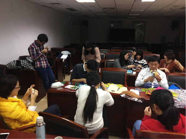 2016年11月19日,历史学院16级硕士班举办了雪绒花DIY手工活动。学期过半,同学们之间已经有了一定的了解,而这次活动的举办使大家在轻松愉快的氛围中进一步相互熟识,打开心扉,互相交流生活、学习、手工的经验感想。在几位手工达人的带领下,同学们从开始的摸索,到完整作品的完成,能够齐心协力、互相帮助。尤其是能在额定作品之外进行充满想象力的发挥,创作出了诸如三星堆像、圣诞树、房屋等精美可爱的作品。本次活动的圆满举办也让部分其他因事不能参加的同学们对以后的活动充满了期待。