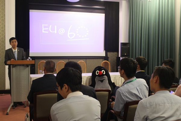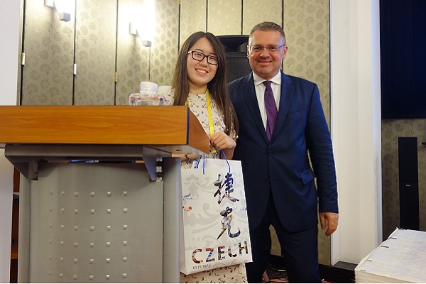 路德维特参赞与大家一同观看了介绍欧盟和捷克共和国的短片,并为大家准备了有关欧盟知识的小测试。沐浴在庄重恢宏的欧盟盟歌《欢乐颂》音乐中,同学们进一步理解了欧洲人民为谋求国家联合、世界和平所做出的不懈努力;徜徉于自然与人文编织的和谐长卷里,同学们直观地碰触到了一个五彩斑斓的捷克——她不仅有油画般优美的湖光山色,也有着底蕴深厚的历史文化名城以及富有活力的现实生活。