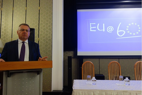随后,路德维特参赞先带领我院师生进入古朴典雅的使馆主建筑,并在一层主会议室与大家进行了亲切友好的交谈。他首先回顾了捷克与中国的传统友谊:原捷克斯洛伐克是首批与新中国建交的国家之一;1993年捷克成为独立主权国家后,长期同中国保持着良好的双边关系,并通过建立孔子学院等增进两国文化交流。欧盟同样是捷克对外交流的重要平台,历史上捷克有着很强的欧洲认同,加入欧盟为捷克的发展带来了历史性机遇。在欧盟框架下,捷克与中国通过“一带一路”战略和中国-中东欧国家“16+1”合作机制,建立起更紧密的经济文化联系。