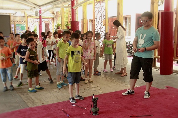 7月5日上午10时,春秋学社社长白月及各部门负责人前往天坛东里小学,进行“传统文化进校园”系列活动。此次活动包括拓印、投壶、木射、解锁以及灯谜等五项游戏。