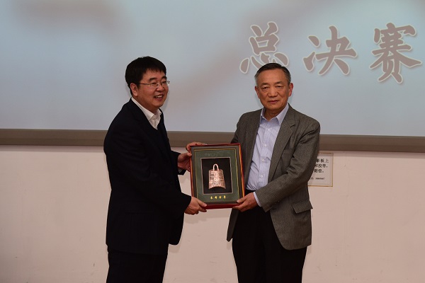 特邀嘉宾郭崇立大使为获得“最佳风采奖”的同学颁奖,并对全场比赛进行了点评。他高度肯定了北师大学子的出色表现,勉励同学们胸怀远大理想,不断增进对当今社会和国际的了解,同时以史为鉴,吸收历史上的经验和教训,勇敢地肩负起中华民族伟大复兴的历史使命,为实现“两个一百年”目标而努力奋斗。我院杨共乐院长为郭崇立大使赠送北师大纪念品。