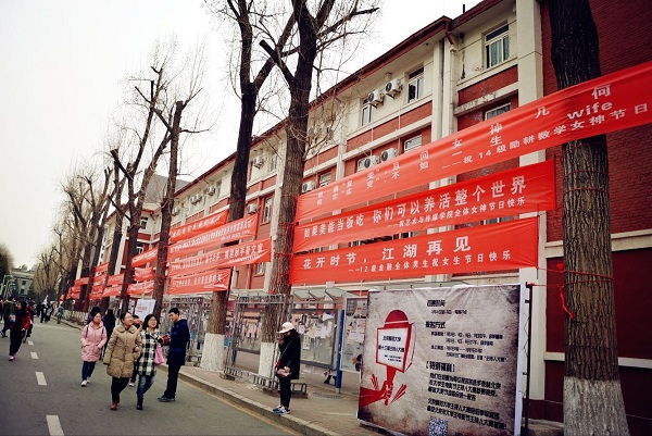 2016年3月6日上午10时30分,由历史学院学生会女生部发起,各院系学生会积极组织参与的女生街活动在邱季端体育馆南侧成功举办。今年活动的主题为:娱乐江湖会——乐活女生节。女生节是近年兴起的学生自发组织的旨在关爱高校女生的节日,而“女生街”活动正是要在女生节之际通过趣味游戏、知识竞答等趣味性和知识性并重的活动,展现我校女生风采,装点节日气氛。