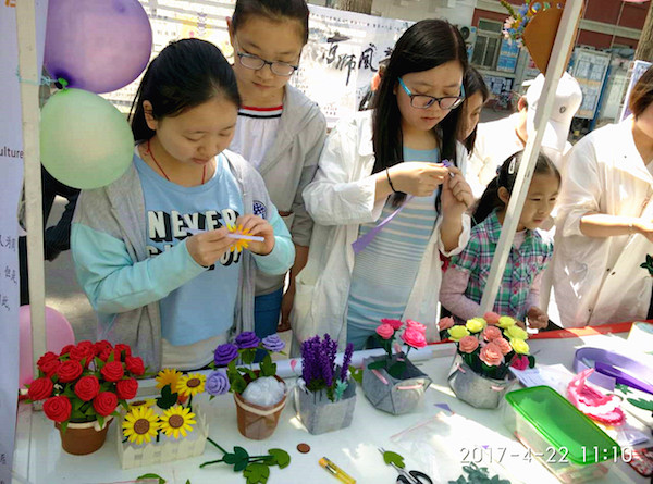 2017年4月22日上午,北京师范大学“5·25”大学生心理健康节正式拉开帷幕。历史学院生活指导室开展了“花之物语,阳光心情”布艺花束DIY的外场活动,旨在体验手工制作的乐趣,以花传情,展现青春的活动,传达阳光的心态。