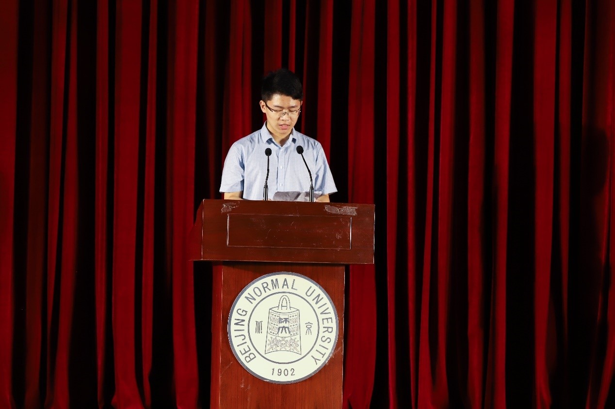 历史学院2021级本科生张桄玮代表新生谈了自己对历史学院学习生活的憧憬与向往。