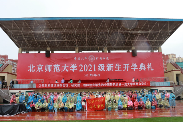 此前,9月6日上午,北京师范大学北京校区2021级新生开学典礼在北京师范大学海淀校区东操场隆重举行。历史学院2021级本科生和研究生新生共200余人同全校新生一道冒雨参加了学校开学典礼。