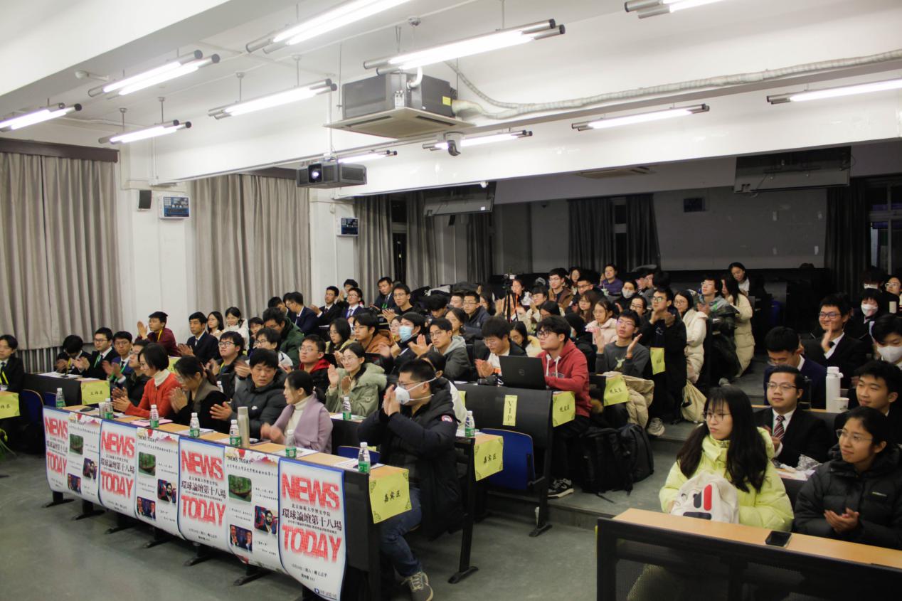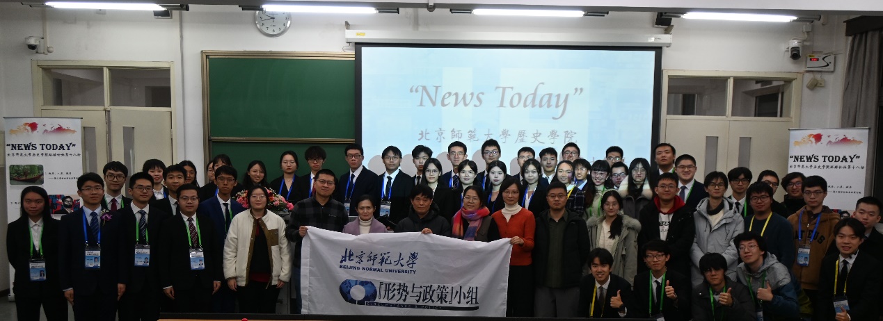 12月16日晚,“News Today”拼搏在线登录环球论坛第十八场在北京师范大学举行。活动由党委学生工作部、历史学院主办,“形势与政策”小组承办。历史学院院长张皓、党委副书记赵云慧、团委书记邢梦姗,历史学院专家学者、班主任(辅导员)代表,以及第二十四届北京师范大学“十佳大学生”获得者代表等参加。