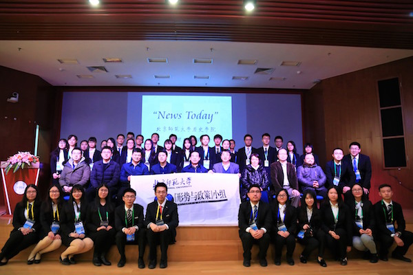 龚自珍有言曰:“良史之忧忧天下”,本场环球论坛围绕文化建设、大国外交与两岸关系等党的十九大报告中的热点话题,结合历史与现实进行主题展示。我校“形势与政策”小组2017级新成员们与来自国际关系学院的同学分为四组,从与十九大相关的主题中选择自己感兴趣的切入口,在老师和师兄师姐的指导下,团结协作,明确分工,前期完成了题目拟定、资料搜集、幻灯片及视频制作、讲稿撰写等工作,最终为到场的各位嘉宾、首都各高校代表以及我校同学献上了一场精彩的研究汇报。