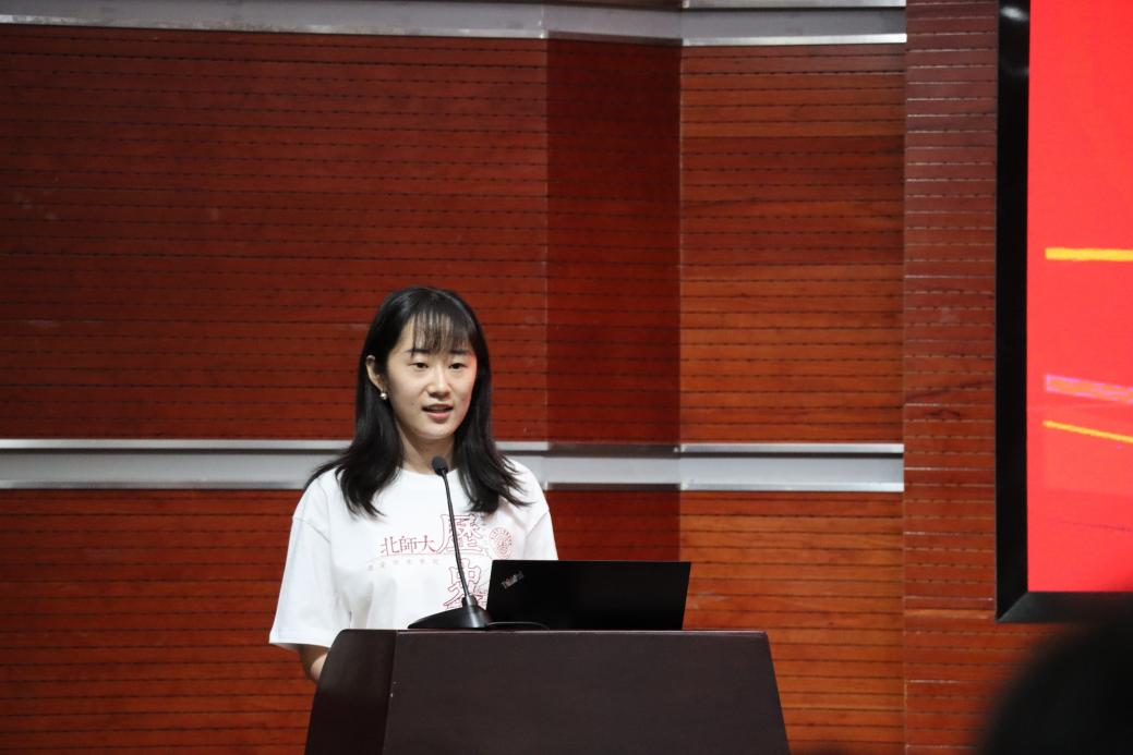 历史学院2022级博士生徐冯媛同学作为老生代表发言。她首先介绍了北师大历史学院学业、生活、实践、就业方面的资源和平台,接着就本科、硕士和博士阶段的不同特点分享了自己的心得。