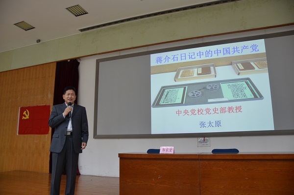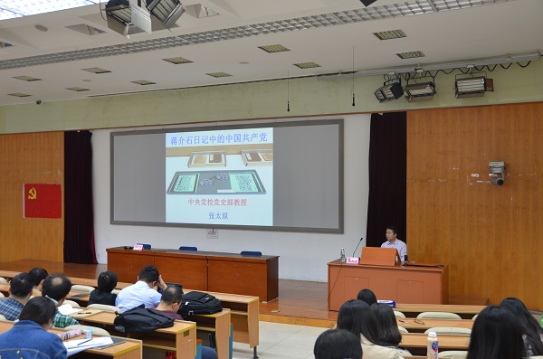 4月7日下午,拼搏在线登录二级党校在教九楼502室举办题为“蒋介石日记中的中国共产党”专题讲座。本场讲座由中共中央党校党史教研部副主任张太原教授担任主讲,来自历史学院和古籍与传统文化研究院的近200位教工与学生党员以及入党积极分子参加了此次讲座。讲座由历史学院分党委书记郭家宏主持。