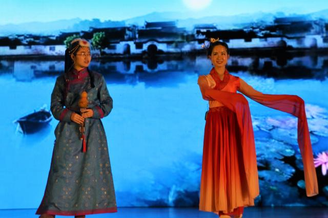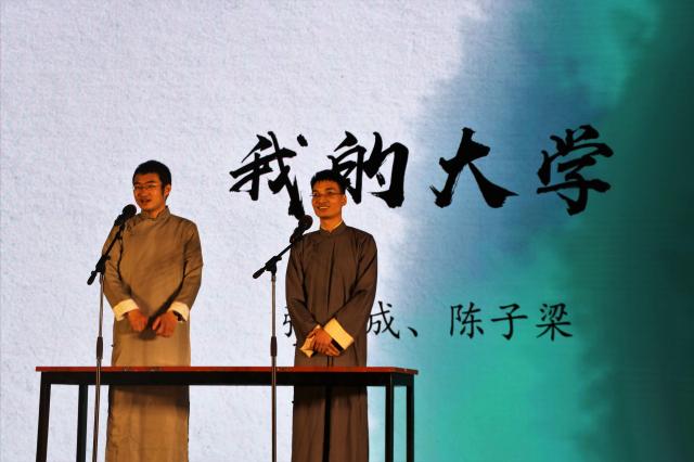 “南风意”版块的节目是:古琴伴奏书法《明月清风》、歌曲《锦鲤抄》、相声《我的大学》、京剧《武家坡》和葫芦丝伴奏舞蹈《西洲一梦草原春》,汇聚了同学们寄往大江南北的牵挂思念。