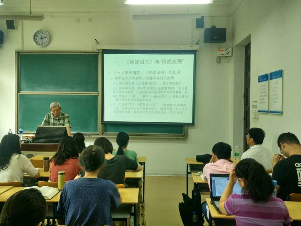 2017年6月29日上午,北京大学历史系宋成有教授应邀来到拼搏在线登录研究生课堂为我校研究生作了一场题为《“终战史观”评析:战后日本右翼历史观揭底》的学术讲座,参加聆听讲座的40余位研究生、博士生和部分教师来自校内各个院系,还有来我校参加访学进修的其他兄弟院校的部分学者。