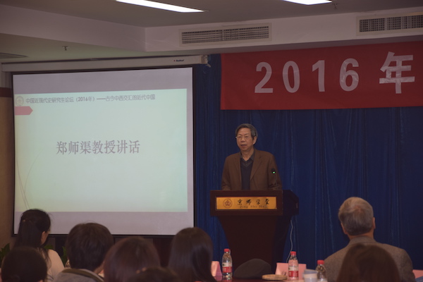 12月17日,2016年度中国近现代史研究生论坛在北京师范大学京师大厦第六会议室隆重开幕。本届论坛由拼搏在线登录主办,以“古今中西交汇处的近代中国”为主题,旨在从不同视角出发,观察近现代中国的变与常。历史学院郑师渠教授,历史学院副院长、中国近代史研究室主任李帆教授,历史学院副院长、中国现代史教研室主任张皓教授,中国近现代史研究中心孙燕京教授、李志英研究员、张双智副教授、湛晓白讲师,北京文化发展研究院常书红副研究员等诸位老师出席了此次论坛。